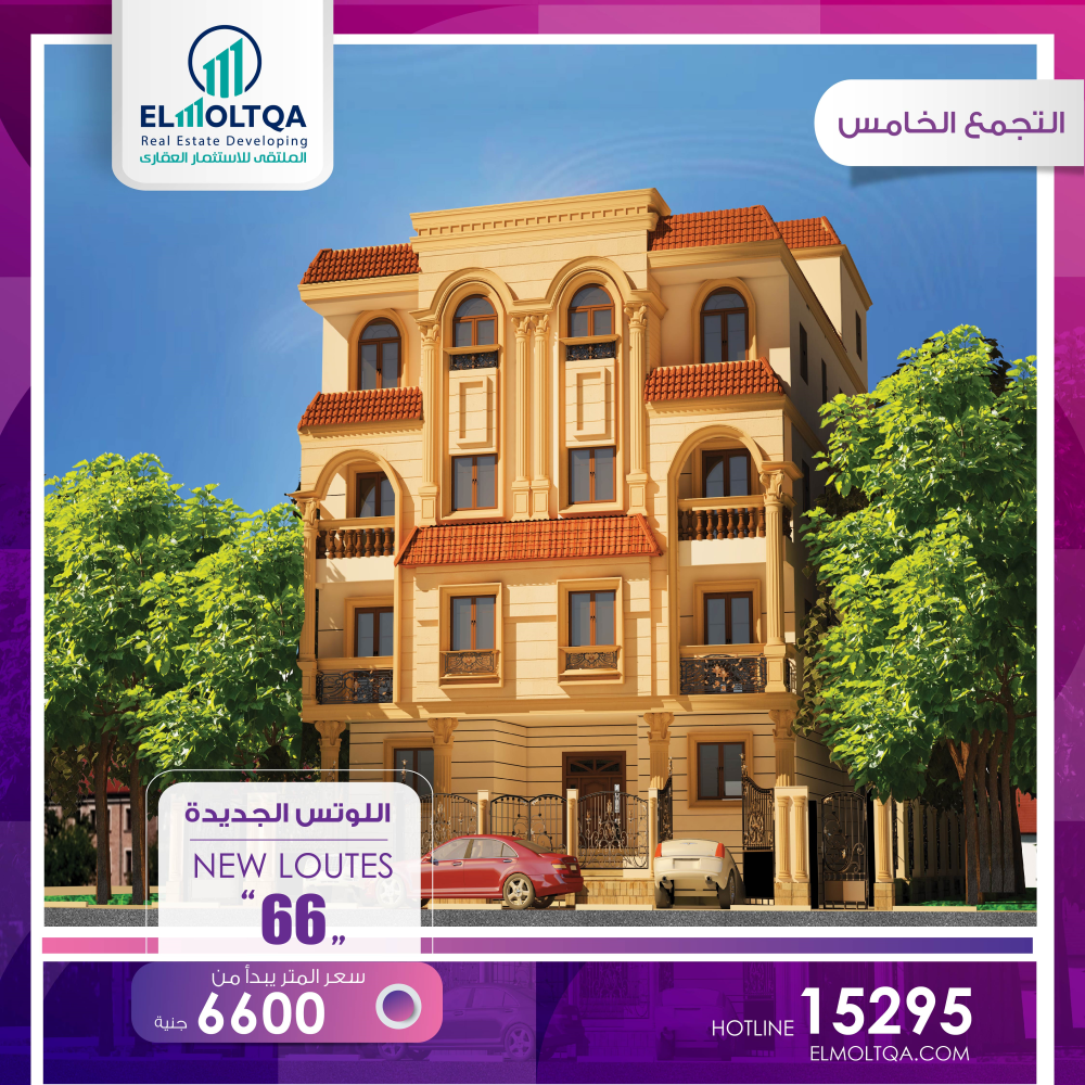حي متكامل يتميز بموقعه الاستراتيجي علي شارعي التسعين الجنوبي و الشمالي وشارع النوادي يقع مشروع اللوتس 84 بموقع متميز بمنطقه اللوتس االجنوبيه . منطقه اللوتس هي منطقه عمارات يجاورها مجموعه من ارقي الكومباوندات السكنيه وتقع في قلب التجمع الخامس علي بعد دقائق من شارع التسعين . المشروع يتكون من ارضي + اربعه ادوار.;